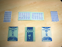 今では、お店で買い物をするとポイントがたまるシステムはよくありますが、データ化がされる以前は、スーパーや商店街での買い物金額に合わせて、小さい切手のようなシールを配っているところがありました。そのシールがブルーチップです。台紙に貼って集めると、集めた冊数ごとにカタログの商品と交換してくれます。回収キャンペーンでの5×5のマス目に貼っていく作業は単純ですが、気分はテトリス。一日中貼った日は、目をつぶっても、「あ、あれとあれを組み合わせたら…」とパズルのように考えてしまいます。この台紙に貼る作業は、私が小学校のときに家のお手伝いでやっていた、お気に入りの作業でした。ブルーチップを貼るのが待ち遠しくて、母の財布をのぞいていたくらい。