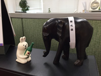 「もっとお注ぎしましょうか」「もう飲めないゾウ」というような会話が聞こえてきそうなウサギとゾウの置物。ウサギは2年前の誕生日のプレゼントにいただいたものです。HFWではスタッフの誕生日にみんなで出し合ってプレゼントを贈り合います。歳をとってもみんなにお祝いしてもらえるのは、うれしいものです。