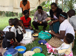 ウガンダでは栄養知識がないために食事の内容が偏ったり、調理法が不適切だったりして栄養不良になる子どもが多く、栄養改善事業でバランスのよい献立や適切な調理法などを実践しながら指導を行っています。また、以前は濁った泉の水を飲み水として使っており、赤痢などの病気の原因になっていました。そこで井戸を建設し、定期的に水質検査をして常に安全な水が手に入るようにしています。各地区では、住民たちの協同組合を結成。事業を行うための助成金の獲得のサポートなど、住民たち自身で運営できるようにアドバイス等を行っています。協同組合は年々規模が拡大し、組合員の収入も増えています。