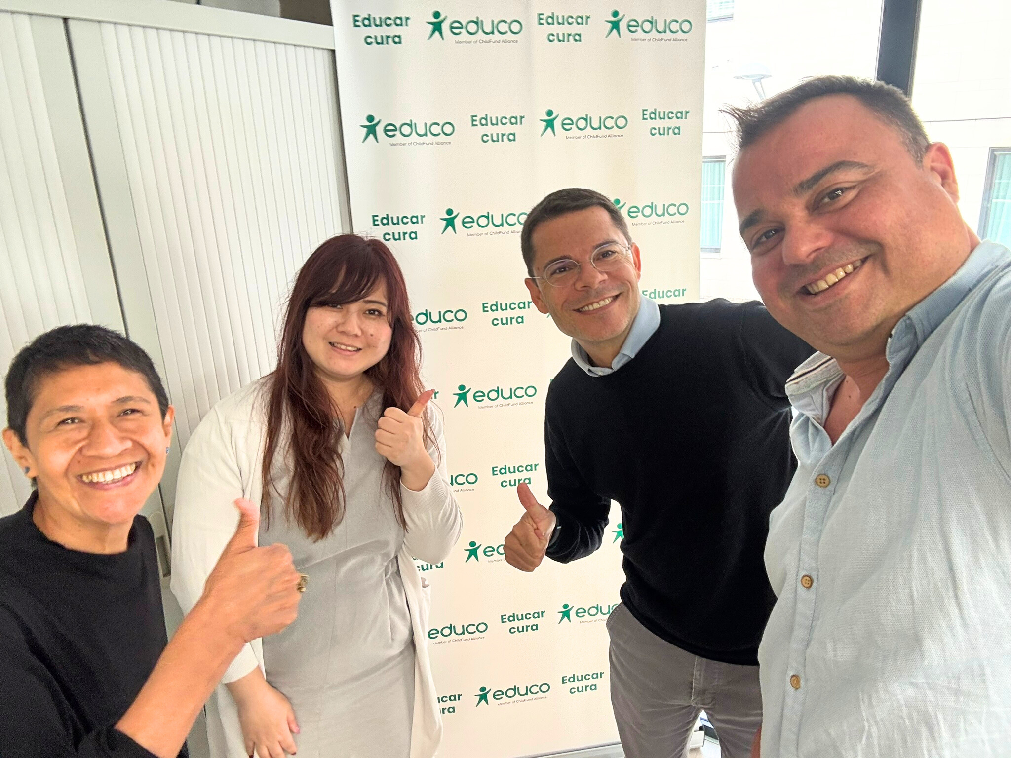 Educoは大きな団体なので、各国の支部がある地域単位で監査担当がいる。スペインでの研修を実施して下さった職員で、左からクララさん(アジア地域担当)、小池、ハビエルさん(コンプライアンス責任者)、エイックスさん(中南米担当)。
