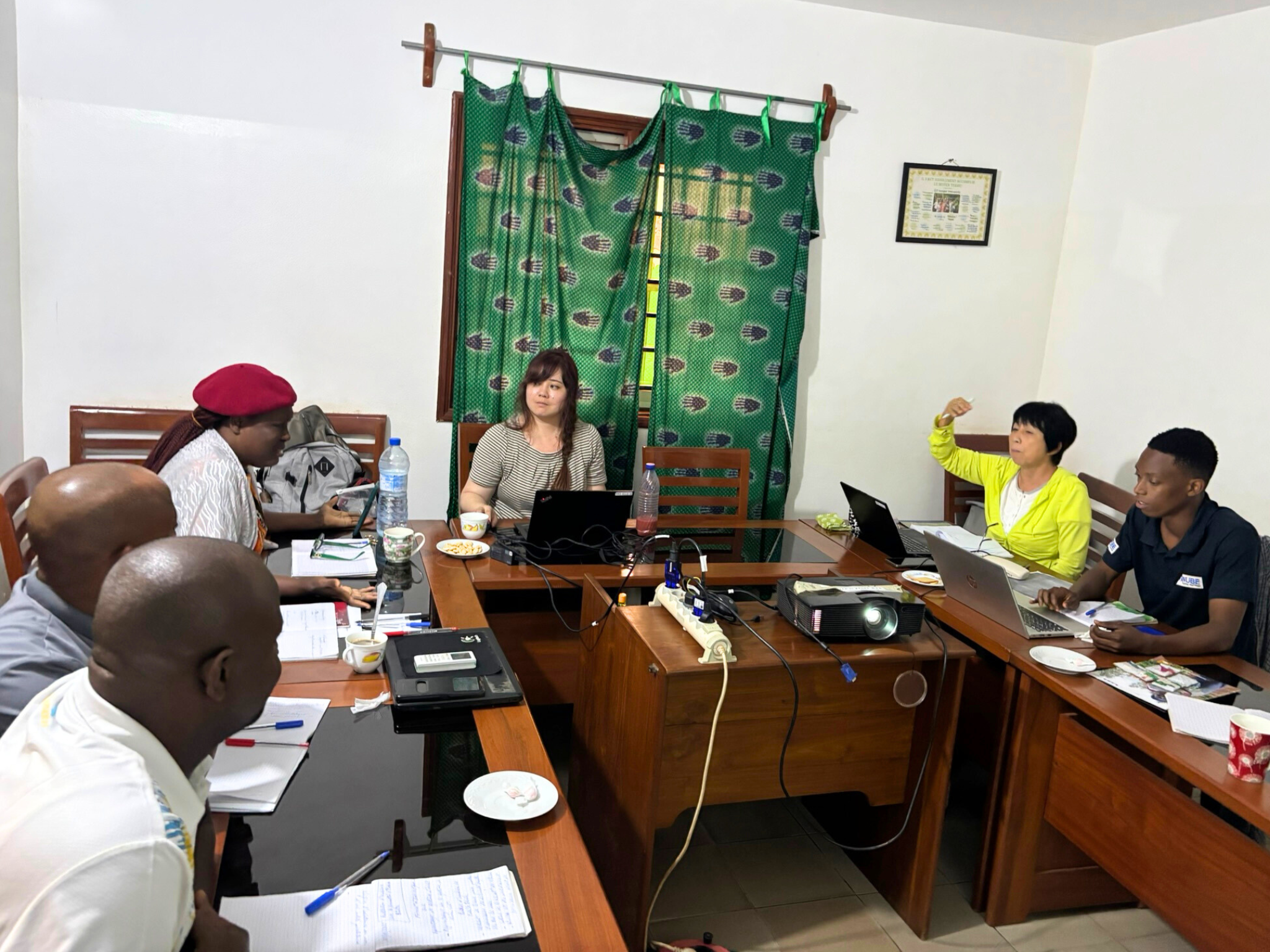 研修の学びを早速HFWベナン支部で共有。研修に参加した支部職員からの報告もあり、どう学びを実践するか、明るく白熱した議論で盛り上がりました。