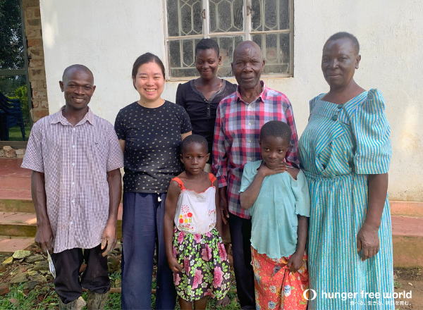 キジトさん一家。両親と11人の子ども、その孫たちの大家族で、写真に写っているのはその一部。お父さんのジョージさん(写真右から2番目)は、10年ほど前からトゥンバリ組合員をやっている。組合の口座を利用してコツコツ貯金をし続けており、組合長がその秘訣を聞きにくるほど。2024年に組合から融資を受けて家畜を購入して、すぐに返済する真面目なお人柄。組合の活動が大好きで、妻や子どもにも加入を勧めるほど。息子さんのひとり(写真一番左)は、すでに組合へ加入した。