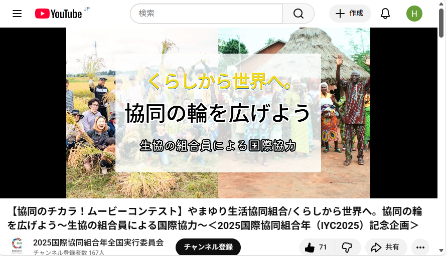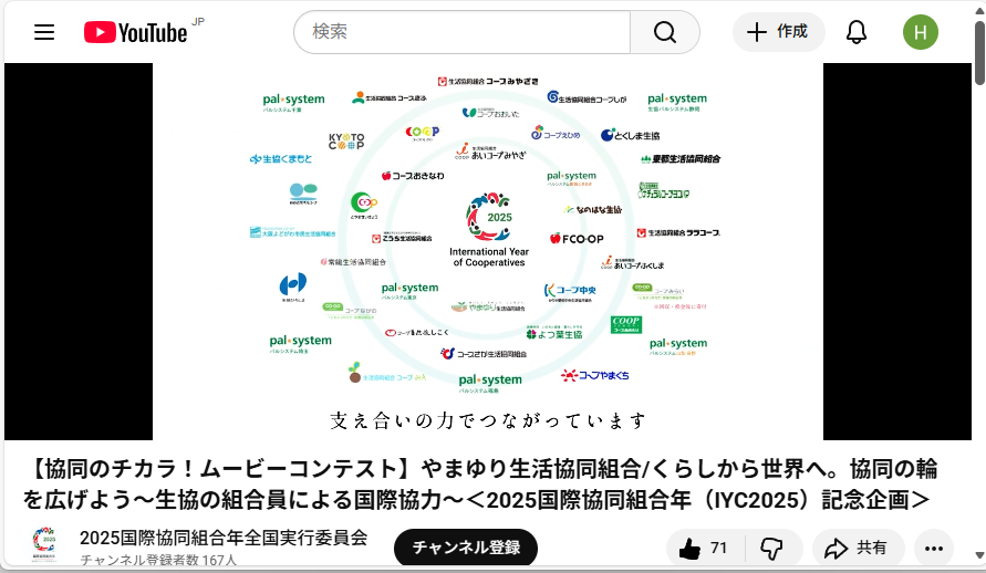 やまゆり生活協同組合(以下、やまゆり生協)が、2025国際協同組合年全国実行委員会主催の「協同組合がよりよい世界を築く~チャレンジムービーコンテスト2025」において、最優秀賞を受賞しました。授賞式は2026年3月24日にオンラインで行われました。