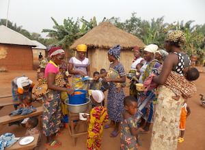 支援対象児の母親たちがおかゆを調理し、子どもたちの栄養改善を実践