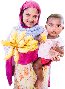 立場の弱い女性たちが助け合える仕組みとして、女性グループを形成。家庭菜園や養畜などの研修、定期的な個別サポートを通して、「食」と「収入」を増やす活動をしています。「自分には現状を変える力がある」と気付いた女性たちの目は輝いています。