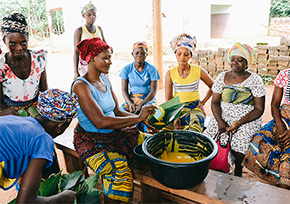 その後、栄養改善事業の元対象の女性を中心に、収入創出のための小規模な貸付(マイクロクレジット)事業を実施。女性たちは、元手をもとに、タマネギや、地元で使われる調味料の販売、精米、地酒づくりなど自分たちでアイデアを出し、収入を得ることができました。そのほか、学校給食の提供や戸別訪問による家庭の食料事情改善など幅広い支援を行ってきました。